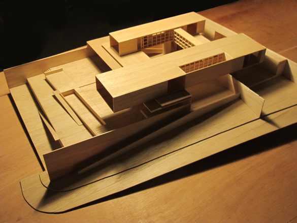 住宅使用水泥、玻璃和鋼材等色調簡約的原材料,空間設計的重心為中央庭院,旨在屏蔽臨街噪音,保護屋主隱私。