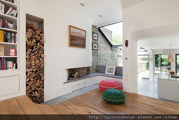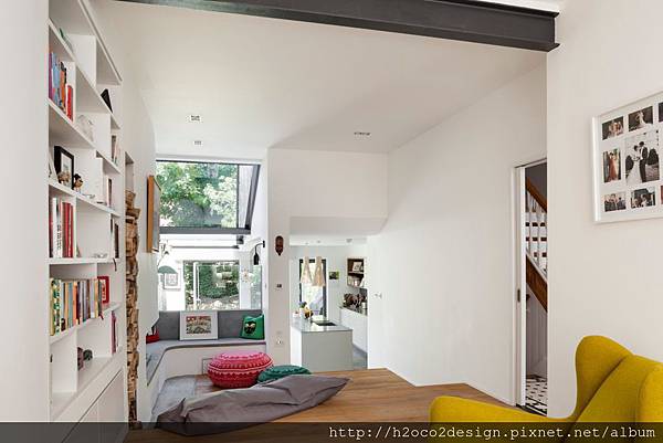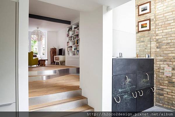 設計師們如此談論這項特別訂製的翻修計畫。“利用開放式的內裝設計整合,維持曾經分離開來的原有機能,房子立即就能有寬敞和舒適的感覺。”他們說。”那裏是一條由前門到後院動線,並連接到花園,不管是建物向北的視野,或是廚房正確地提供充足自然光源的窗戶位置。”客廳區則有著多樣化的風格,其中有水泥及木質地板,鐵窗框,毫不掩飾的木材與磚頭。地下室的一角降低了天花板,改變了整個空間的概念。