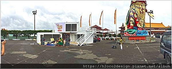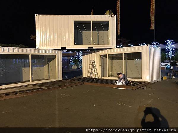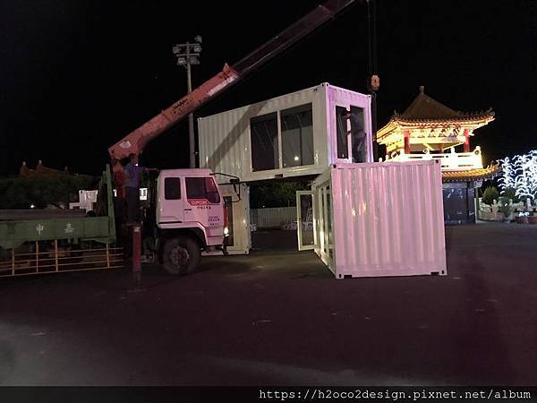 因為租用的是聖母廟前的停車廣場,所以連夜將貨櫃定位完成組裝