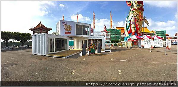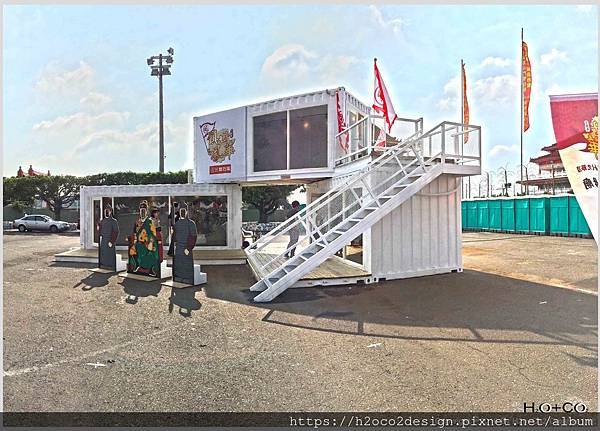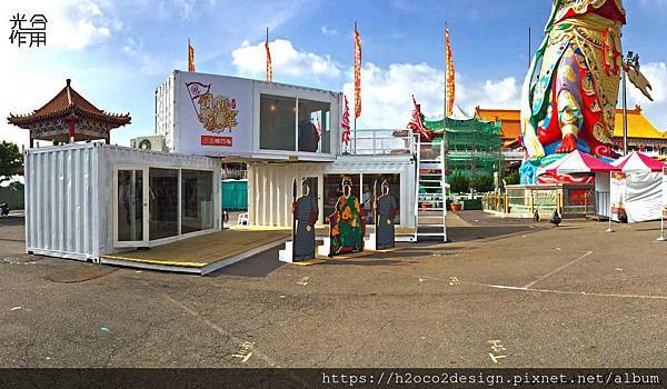 位於台南聖母廟前的國姓爺特展,以二手貨櫃的方式做為臨時展櫃,為因應快速施工及拆遷的特性,