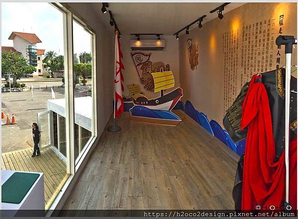 以三個20呎貨櫃屋專插堆疊的方式設計,讓展櫃結合室內外空間,在穿插的動線中導覽國姓公的故事。
