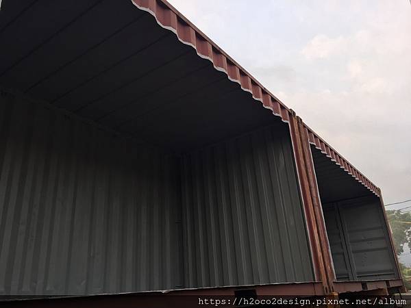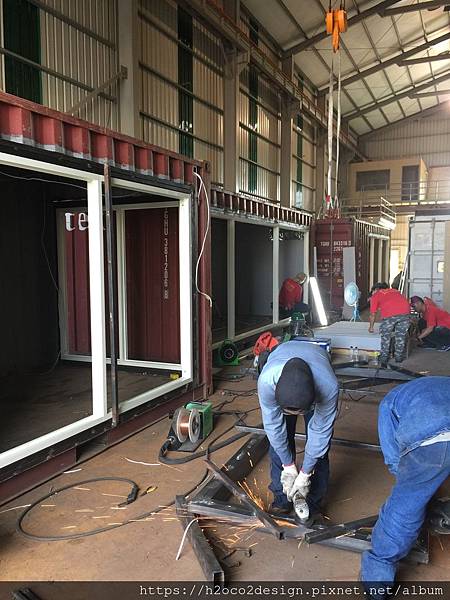 開孔後的貨櫃位於開孔處先以鐵件加強再上鋁窗的框以定型,將室內都置入隔熱綿後封上防火矽酸鈣板