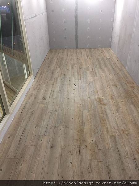 接下來是室內地面的鋪裝,選用長條型的木紋塑膠地磚,施工快速簡單而且也可以替業主省荷包